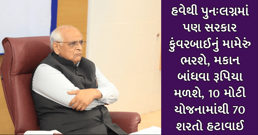 હવેથી પુનઃલગ્નમાં પણ સરકાર કુંવરબાઈનું મામેરું ભરશે, મકાન બાંધવા રૂપિયા મળશે, 10 મોટી યોજનામાંથી 70 શરતો હટાવાઈ