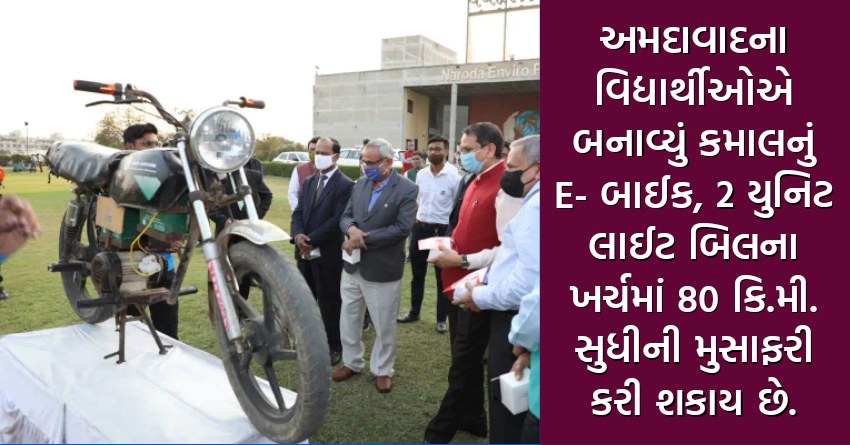 અમદાવાદના વિદ્યાર્થીઓએ બનાવ્યું કમાલનું E- બાઈક, 2 યુનિટ લાઈટ બિલના ખર્ચમાં 80 કિ.મી. સુધીની મુસાફરી કરી શકાય છે.