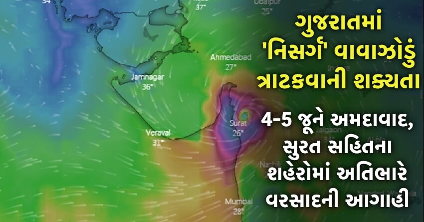 ગુજરાતમાં ‘નિસર્ગ’ વાવાઝોડું ત્રાટકવાની શક્યતા, 4-5 જૂને અમદાવાદ, સુરત સહિતના શહેરોમાં અતિભારે વરસાદની આગાહી