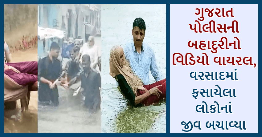ગુજરાત પોલીસની બહાદુરીનો વિડિયો વાયરલ, વરસાદમાં ફસાયેલા લોકોનાં જીવ બચાવ્યા