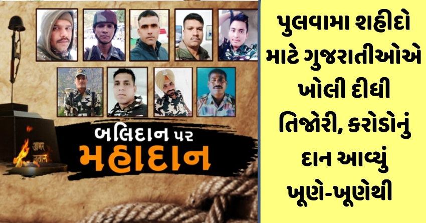 પુલવામા શહીદો માટે ગુજરાતીઓએ ખોલી દીધી તિજોરી, કરોડોનું દાન આવ્યું ખૂણે-ખૂણેથી
