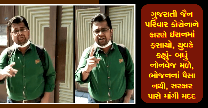 ગુજરાતી જૈન પરિવાર કોરોનાને કારણે ઈરાનમાં ફસાયો, યુવકે કહ્યું- બધું નોનવેજ મળે, ભોજનનાં પૈસા નથી, સરકાર પાસે માંગી મદદ