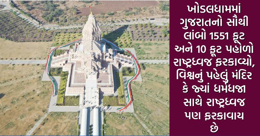 ખોડલધામમાં ગુજરાતનો સૌથી લાંબો 1551 ફૂટ અને 10 ફૂટ પહોળો રાષ્ટ્રધ્વજ ફરકાવ્યો, વિશ્વનું પહેલું મંદિર કે જ્યાં ધર્મધજા સાથે રાષ્ટ્રધ્વજ પણ ફરકાવાય છે