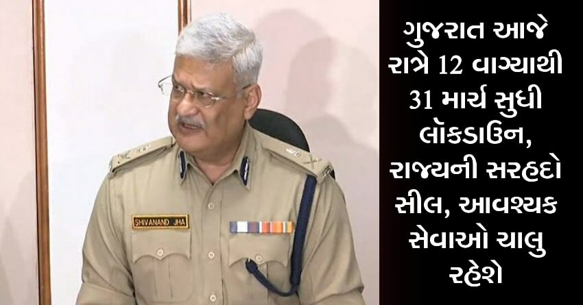 ગુજરાત આજે રાત્રે 12 વાગ્યાથી 31 માર્ચ સુધી લૉકડાઉન, રાજ્યની સરહદો સીલ, આવશ્યક સેવાઓ ચાલુ રહેશે