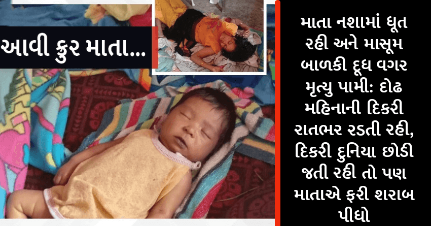 માતા નશામાં ધૂત રહી અને માસૂમ બાળકી દૂધ વગર મૃત્યુ પામી: દોઢ મહિનાની દિકરી રાતભર રડતી રહી, દિકરી દુનિયા છોડી જતી રહી તો પણ માતાએ ફરી શરાબ પીધો