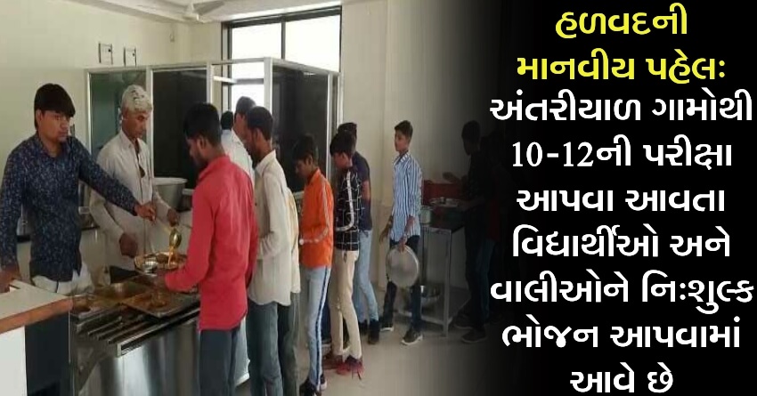 હળવદની માનવીય પહેલ: અંતરીયાળ ગામોથી 10-12ની પરીક્ષા આપવા આવતા વિદ્યાર્થીઓ અને વાલીઓને નિ:શુલ્ક ભોજન આપવામાં આવે છે