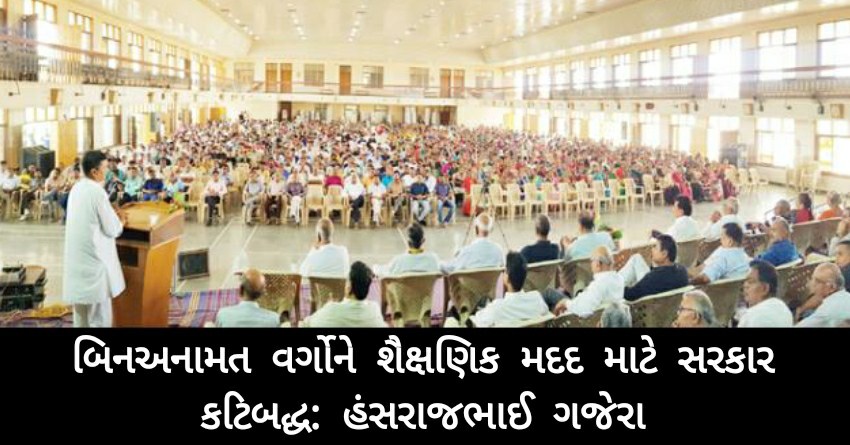 બિનઅનામત વર્ગોને શૈક્ષણિક મદદ માટે સરકાર કટિબદ્ધ: હંસરાજભાઈ ગજેરા