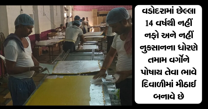 વડોદરામાં છેલ્લા 14 વર્ષથી નહીં નફો અને નહીં નુકસાનના ધોરણે તમામ વર્ગોને પોષાય તેવા ભાવે દિવાળીમાં મીઠાઈ બનાવે છે