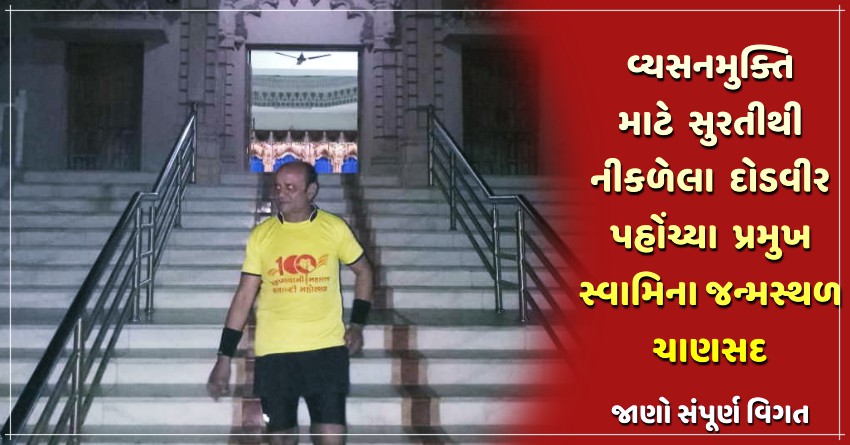 વ્યસનમુક્તિ માટે સુરતીથી નીકળેલા દોડવીર પહોંચ્યા પ્રમુખ સ્વામિના જન્મસ્થળ ચાણસદ