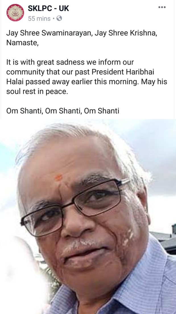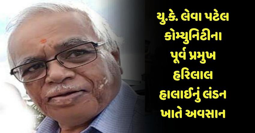 યુ.કે.લેવા પટેલ કોમ્યુનિટીના પૂર્વ પ્રમુખ હરિલાલ હાલાઈનું લંડન ખાતે અવસાન