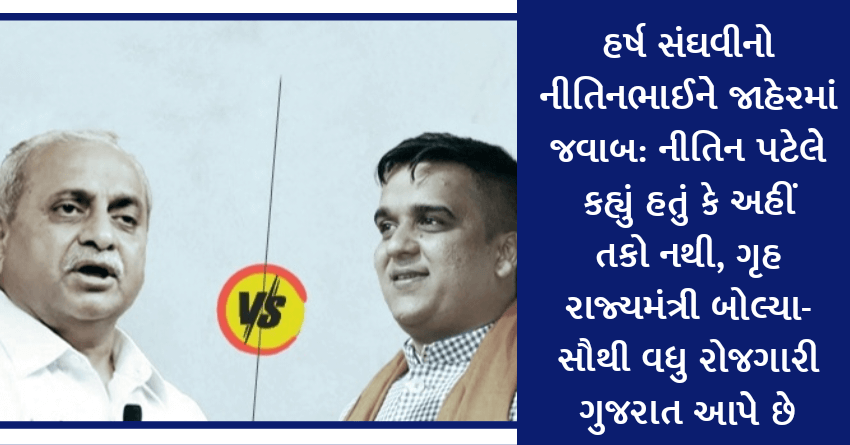 હર્ષ સંઘવીનો નીતિનભાઈને જાહેરમાં જવાબ:નીતિન પટેલે કહ્યું હતું કે અહીં તકો નથી, ગૃહ રાજ્યમંત્રી બોલ્યા- સૌથી વધુ રોજગારી ગુજરાત આપે છે