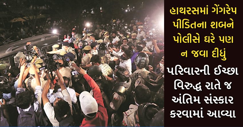 હાથરસમાં ગેંગરેપ પીડિતના શબને પોલીસે ઘરે પણ ન જવા દીધું, પરિવારની ઈચ્છા વિરુદ્ધ રાતે જ અંતિમ સંસ્કાર કરવામાં આવ્યા