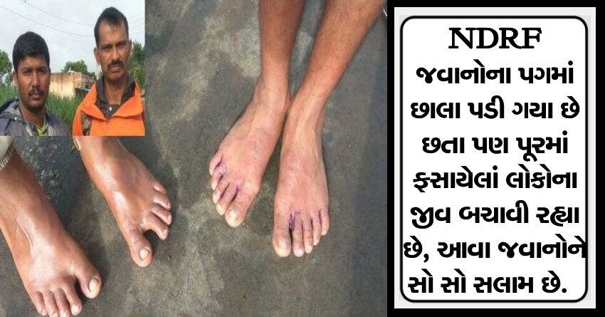 NDRF જવાનોના પગમાં છાલા પડી ગયા છે છતા પણ પૂરમાં ફસાયેલાં લોકોના જીવ બચાવી રહ્યા છે, આવા જવાનોને સો સો સલામ છે.