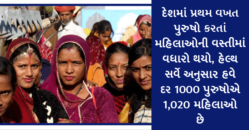 દેશમાં પ્રથમ વખત પુરુષો કરતાં મહિલાઓની વસ્તીમાં વધારો થયો, હેલ્થ સર્વે અનુસાર હવે દર 1000 પુરુષોએ 1,020 મહિલાઓ છે