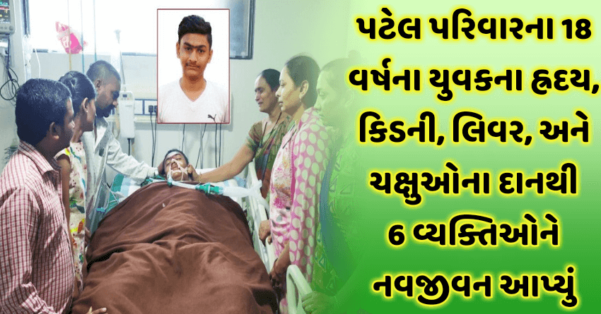 પટેલ પરિવારના 18 વર્ષના યુવકના હ્રદય, કિડની, લિવર, અને ચક્ષુઓના દાનથી 6 વ્યક્તિઓને નવજીવન આપ્યું