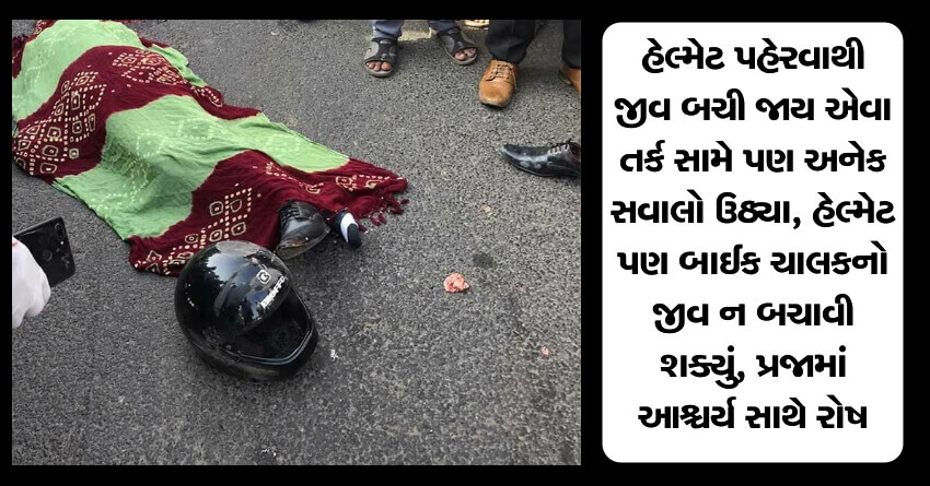 હેલ્મેટ પહેરવાથી જીવ બચી જાય એવા તર્ક સામે પણ અનેક સવાલો ઉઠ્યા, હેલ્મેટ પણ બાઈક ચાલકનો જીવ ન બચાવી શક્યું, પ્રજામાં આશ્ચર્ય સાથે રોષ