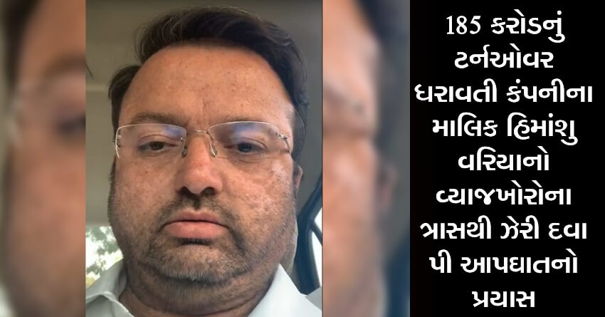 185 કરોડનું ટર્નઓવર ધરાવતી કંપનીના માલિક હિમાંશુ વરિયાનો વ્યાજખોરોના ત્રાસથી ઝેરી દવા પી આપઘાતનો પ્રયાસ