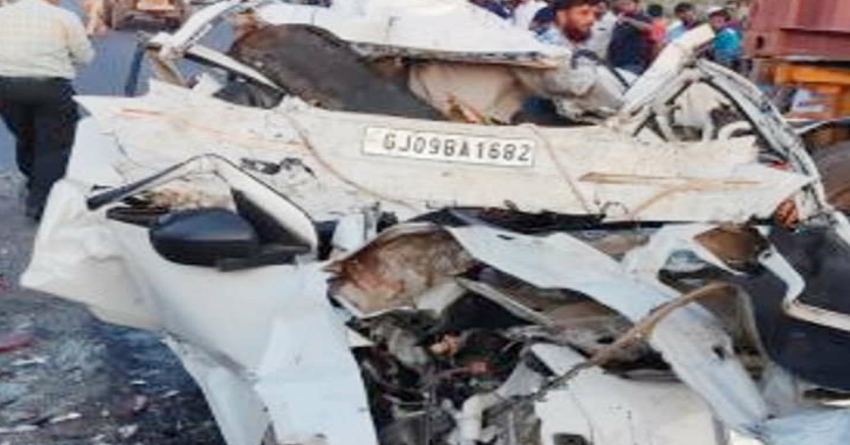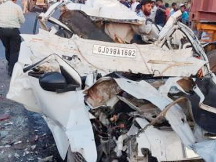 હિંમતનગર- વિજાપુર રોડ પર ટ્રિપલ અકસ્માતમાં શિક્ષકદંપતી કારમાં જ દબાઇ જતાં મોત