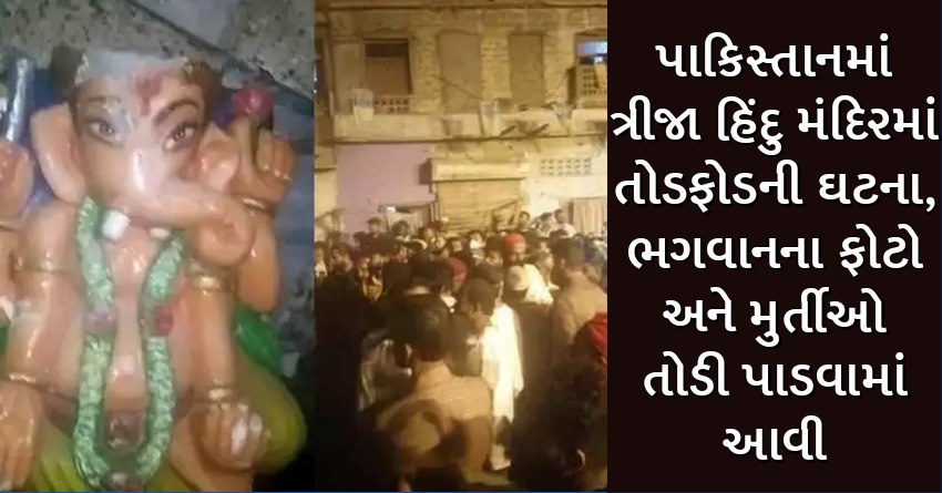 પાકિસ્તાનમાં ત્રીજા હિંદુ મંદિરમાં તોડફોડની ઘટના, ભગવાનના ફોટો અને મુર્તીઓ તોડી પાડવામાં આવી