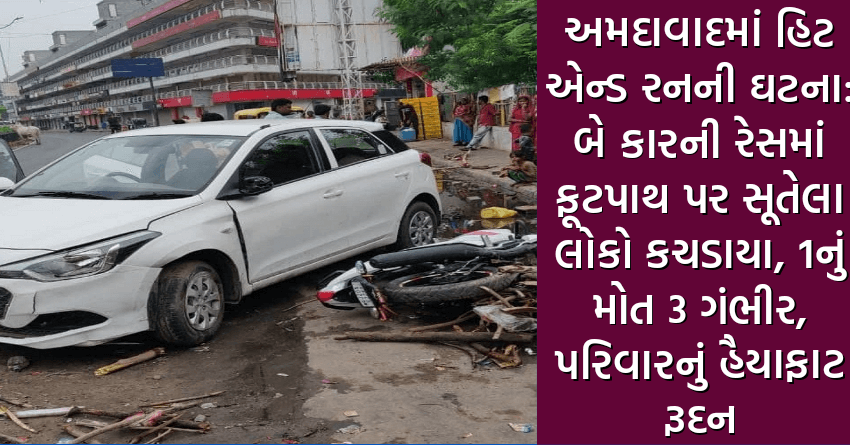 અમદાવાદમાં હિટ એન્ડ રનની ઘટના: બે કારની રેસમાં ફૂટપાથ પર સૂતેલા લોકો કચડાયા, 1નું મોત 3 ગંભીર, પરિવારનું હૈયાફાટ રૂદન