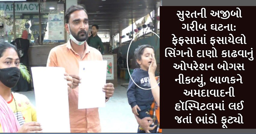 સુરતની અજીબો ગરીબ ઘટના: ફેફસામાં ફસાયેલો સિંગનો દાણો કાઢવાનું ઓપરેશન બોગસ નીકળ્યું, બાળકને અમદાવાદની હૉસ્પિટલમાં લઈ જતાં ભાંડો ફૂટ્યો
