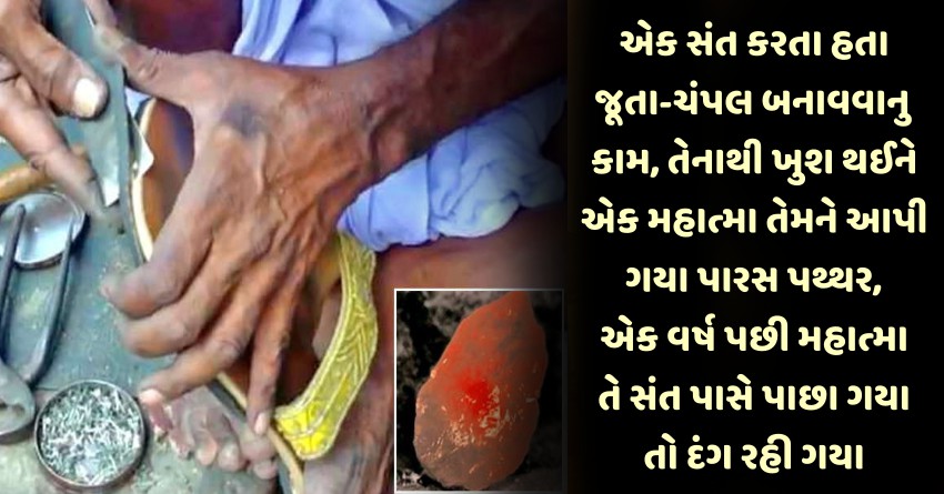 – મહાત્માએ સંતને કહ્યુ કે આ પથ્થરની મદદથી તું ધનવાન બની જઇશ અને તારે જૂતા-ચંપલ બનાવવાની જરૂર જ નહીં પડે. આ કહીને મહાત્માએ તે પથ્થર સંતની ઝૂંપડીની છત પર રાખી દીધો અને ત્યાંથી ચાલ્યા ગયા.