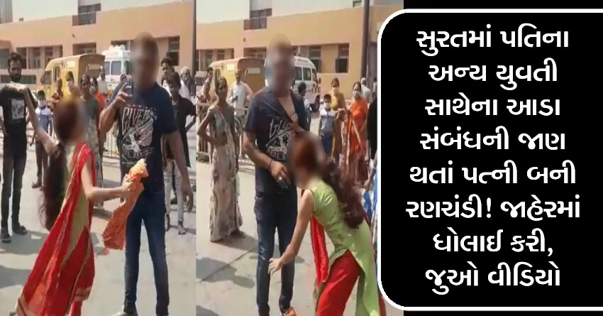 સુરતમાં પતિના અન્ય યુવતી સાથેના આડા સંબંધની જાણ થતાં પત્ની બની રણચંડી! જાહેરમાં ધોલાઈ કરી, જુઓ વીડિયો