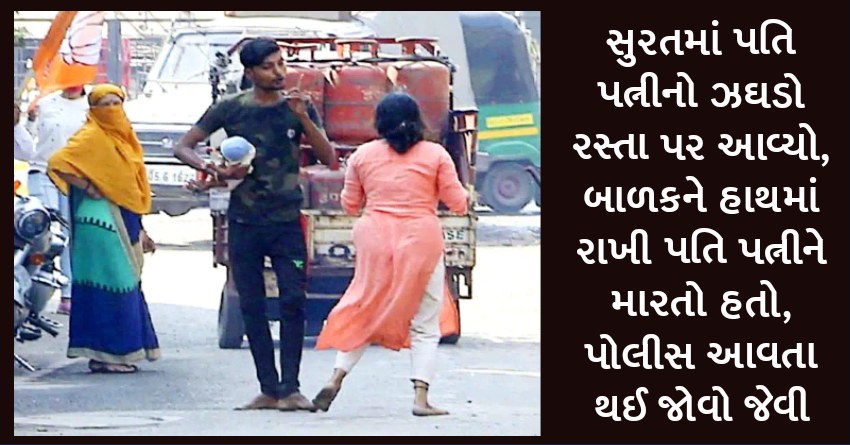 સુરતમાં પતિ પત્નીનો ઝઘડો રસ્તા પર આવ્યો, બાળકને હાથમાં રાખી પતિ પત્નીને મારતો હતો, પોલીસ આવતા થઈ જોવો જેવી