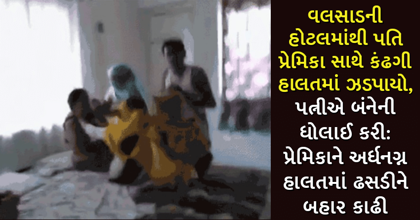 વલસાડની હોટલમાંથી પતિ પ્રેમિકા સાથે કંઢગી હાલતમાં ઝડપાયો, પત્નીએ બંનેની ધોલાઈ કરી: પ્રેમિકાને અર્ધનગ્ન હાલતમાં ઢસડીને બહાર કાઢી