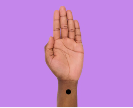 આ પોઇન્ટ કાંડાની નજીક અંદરની બાજુ બંને મુખ્ય રેખાઓની વચ્ચે હોય છે.