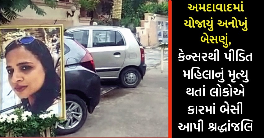 અમદાવાદમાં યોજાયું અનોખું બેસણું, કેન્સરથી પીડિત મહિલાનું મૃત્યુ થતાં લોકોએ કારમાં બેસી આપી શ્રદ્ધાંજલિ