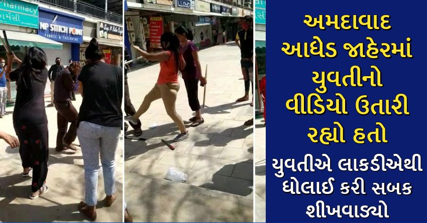અમદાવાદ આધેડ જાહેરમાં યુવતીનો વીડિયો ઉતારી રહ્યો હતો, યુવતીએ લાકડીએથી ધોલાઈ કરી સબક શીખવાડ્યો