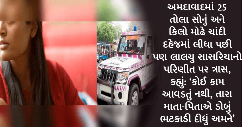 અમદાવાદમાં 25 તોલા સોનું અને કિલો મોઢે ચાંદી દહેજમાં લીધા પછી પણ લાલચુ સાસરિયાનો પરિણીત પર ત્રાસ, કહ્યું: ‘કોઈ કામ આવડતું નથી, તારા માતા-પિતાએ ડોબું ભટકાડી દીધું અમને’