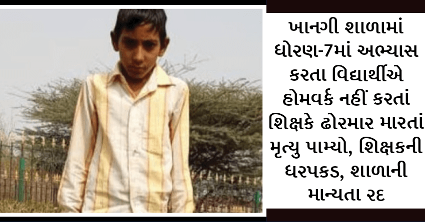 ખાનગી શાળામાં ધોરણ-7માં અભ્યાસ કરતા વિદ્યાર્થીએ હોમવર્ક નહીં કરતાં શિક્ષકે ઢોરમાર મારતાં મૃત્યુ પામ્યો, શિક્ષકની ધરપકડ કરાઈ