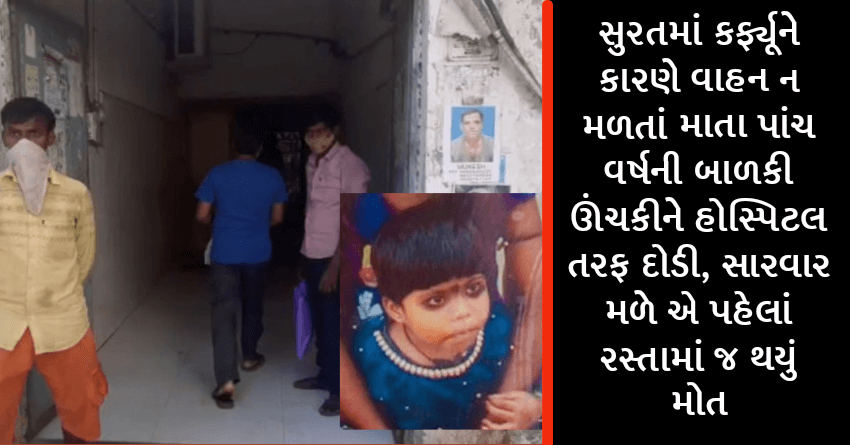સુરતમાં કર્ફ્યૂને કારણે વાહન ન મળતાં માતા પાંચ વર્ષની બાળકી ઊંચકીને હોસ્પિટલ તરફ દોડી, સારવાર મળે એ પહેલાં રસ્તામાં જ થયું મોત