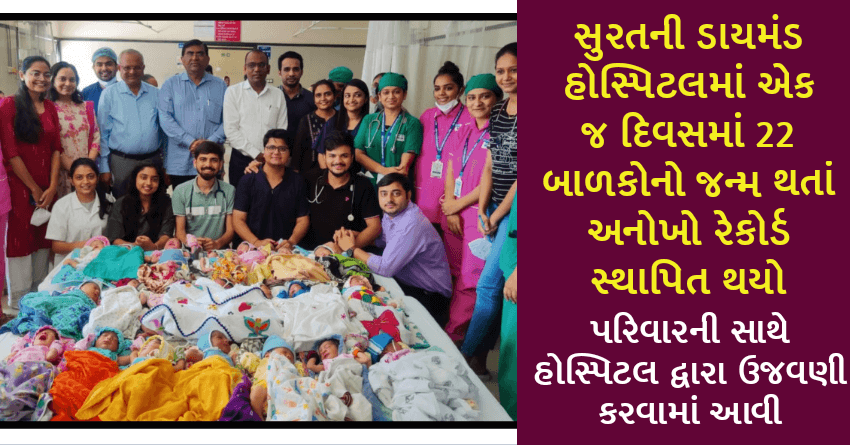 સુરતની ડાયમંડ હોસ્પિટલમાં એક જ દિવસમાં 22 બાળકોનો જન્મ થતાં અનોખો રેકોર્ડ સ્થાપિત થયો, પરિવારની સાથે હોસ્પિટલ દ્વારા ઉજવણી કરવામાં આવી