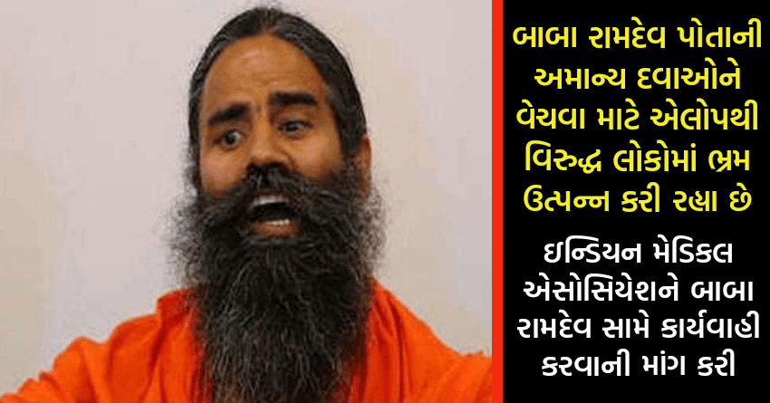 બાબા રામદેવ પોતાની અમાન્ય દવાઓને વેચવા માટે એલોપથી વિરુદ્ધ લોકોમાં ભ્રમ ઉત્પન્ન કરી રહ્યા છે- ઇન્ડિયન મેડિકલ એસોસિયેશને બાબા રામદેવ સામે કાર્યવાહી કરવાની માંગ કરી