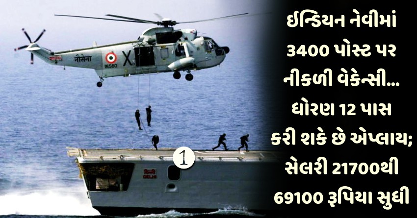ઇન્ડિયન નેવીમાં 3400 પોસ્ટ પર નીકળી વેકેન્સી… ધોરણ 12 પાસ કરી શકે છે એપ્લાય; સેલરી 21700થી 69100 રૂપિયા સુધી