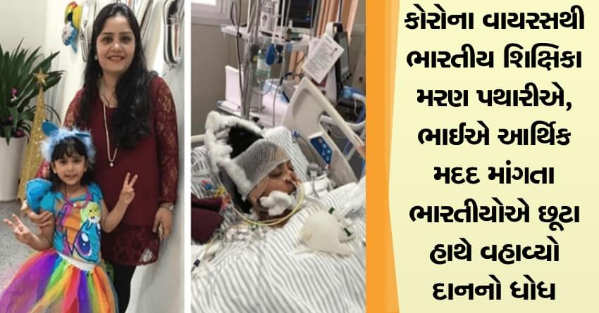 કોરોના વાયરસથી ભારતીય શિક્ષિકા મરણ પથારીએ, ભાઈએ આર્થિક મદદ માંગતા ભારતીયોએ છૂટા હાથે વહાવ્યો દાનનો ધોધ