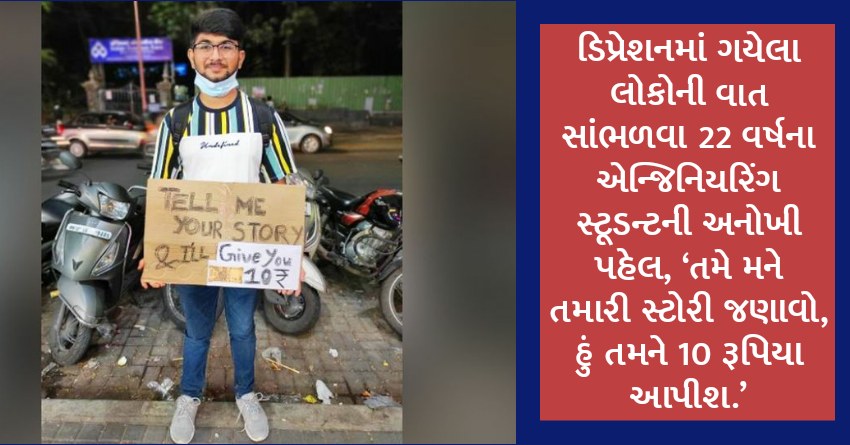 ડિપ્રેશનમાં ગયેલા લોકોની વાત સાંભળવા 22 વર્ષના એન્જિનિયરિંગ સ્ટૂડન્ટની અનોખી પહેલ, ‘તમે મને તમારી સ્ટોરી જણાવો, હું તમને 10 રૂપિયા આપીશ.’