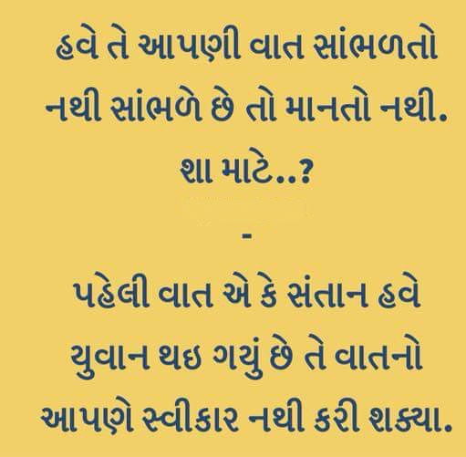 🎯 પહેલી વાત એ કે સંતાન હવે યુવાન થઇ ગયું છે તે વાતનો આપણે સ્વીકાર નથી કરી શક્યા.