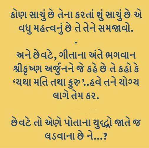 ⭐ અને છેવટે, ગીતાના અંતે ભગવાન શ્રીકૃષ્ણ અર્જુનને જે કહે છે તે કહો કે ‘યથા મતિ તથા કુરુ’..હવે તને યોગ્ય લાગે તેમ કર.