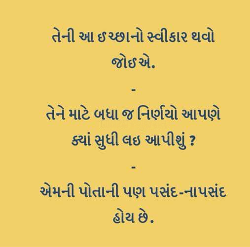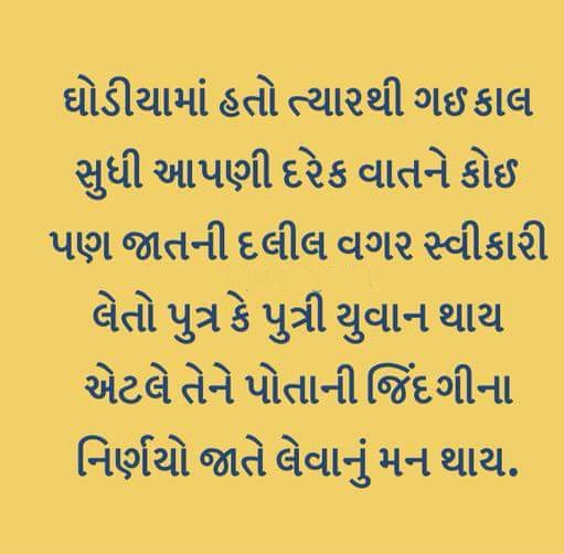 🌹ઘોડીયામાં હતો ત્યારથી ગઈકાલ સુધી આપણી દરેક વાતને કોઈ પણ જાતની દલીલ વગર સ્વીકારી લેતો પુત્ર કે પુત્રી યુવાન થાય એટલે તેને પોતાની જિંદગીના નિર્ણયો જાતે લેવાનું મન થાય.