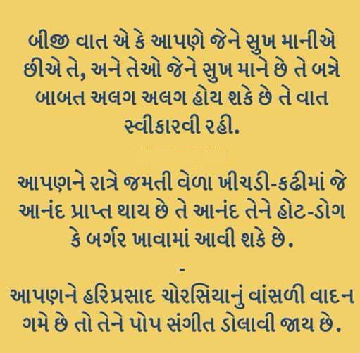 🎯 બીજી વાત એ કે આપણે જેને સુખ માનીએ છીએ તે, અને તેઓ જેને સુખ માને છે તે બન્ને બાબત અલગ અલગ હોય શકે છે તે વાત સ્વીકારવી રહી.