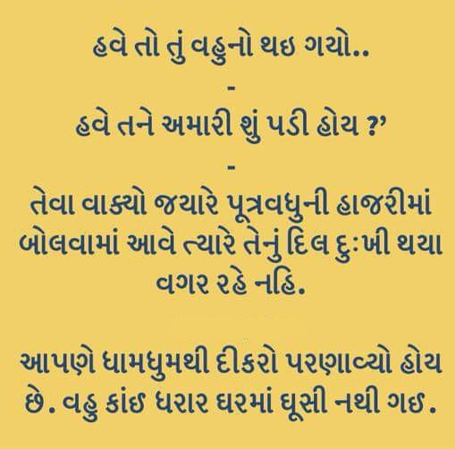 🌹આપણે ધામધુમથી દીકરો પરણાવ્યો હોય છે. વહુ કાંઈ ધરાર ઘરમાં ઘૂસી નથી ગઈ.