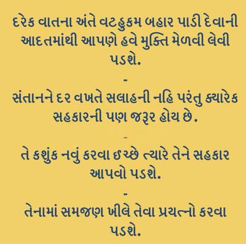 🌹સંતાનને દર વખતે સલાહની નહિ પરંતુ ક્યારેક સહકારની પણ જરૂર હોય છે.