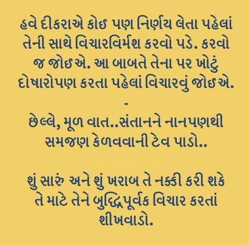 🌹 હવે દીકરાએ કોઈ પણ નિર્ણય લેતા પહેલાં તેની સાથે વિચારવિર્મશ કરવો પડે. કરવો જ જોઈએ. આ બાબતે તેના પર ખોટું દોષારોપણ કરતા પહેલાં વિચારવું જોઈએ.