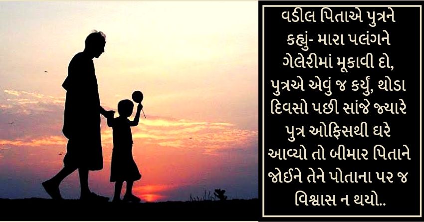પિતાએ કહ્યું- રૂમમાં કોઈપ્રકારની ખોટ નથી, પરંતુ ગેલેરીમાં જ મારો પલંગ મૂકાવી દો. પુત્ર આજ્ઞાકારી હતો, તો તેના પિતાની આ જિદ્દ પણ પૂરી કરી દીધી. હવે પિતાનો પલંગ ગેલેરીમાં આવી ગયો હતો, દરેક સમયે પલંગ પર આરામ કરતાં પિતા હવે ફરતાં ફરતાં ગેટ સુધી જતાં હતાં. થોડીવાર લોનમાં ચાલતા. લોનમાં પૌત્ર સાથે રમતાં, બોલતા અને હંસતાં. ક્યારેક-ક્યારેક દીકરાં પાસે મનપસંદ ખાવાની વસ્તુઓ લાવવાની ડિમાન્ડ કરતાં. ધીરે-ધીરે તેમનું સ્વાસ્થ્ય સારું થવા લાગ્યું હતું.