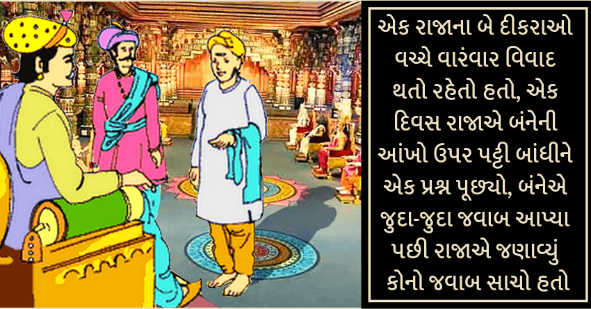 એક રાજાના બે દીકરાઓ વચ્ચે વારંવાર વિવાદ થતો રહેતો હતો, એક દિવસ રાજાએ બંનેની આંખો ઉપર પટ્ટી બાંધીને એક પ્રશ્ન પૂછ્યો, બંનેએ જુદા-જુદા જવાબ આપ્યા પછી રાજાએ જણાવ્યું કોનો જવાબ સાચો હતો