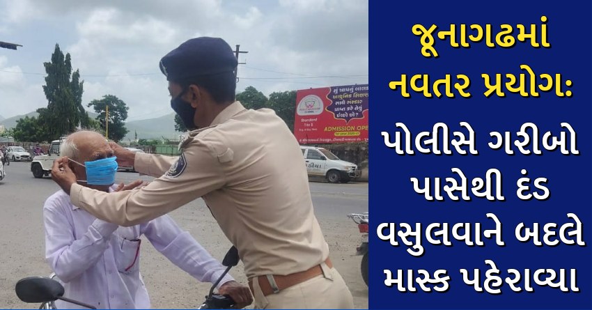 જૂનાગઢમાં નવતર પ્રયોગ: પોલીસે ગરીબો પાસેથી દંડ વસુલવાને બદલે માસ્ક પહેરાવ્યા